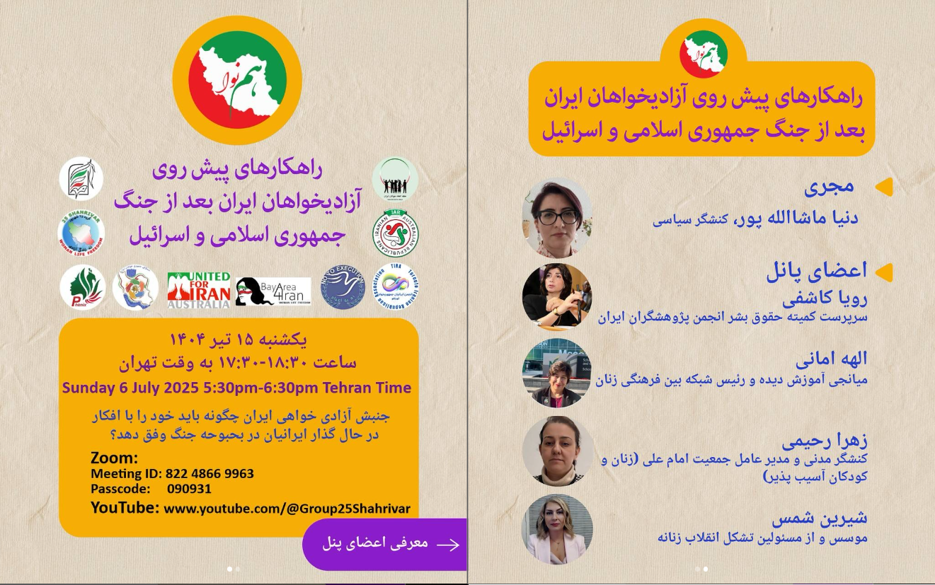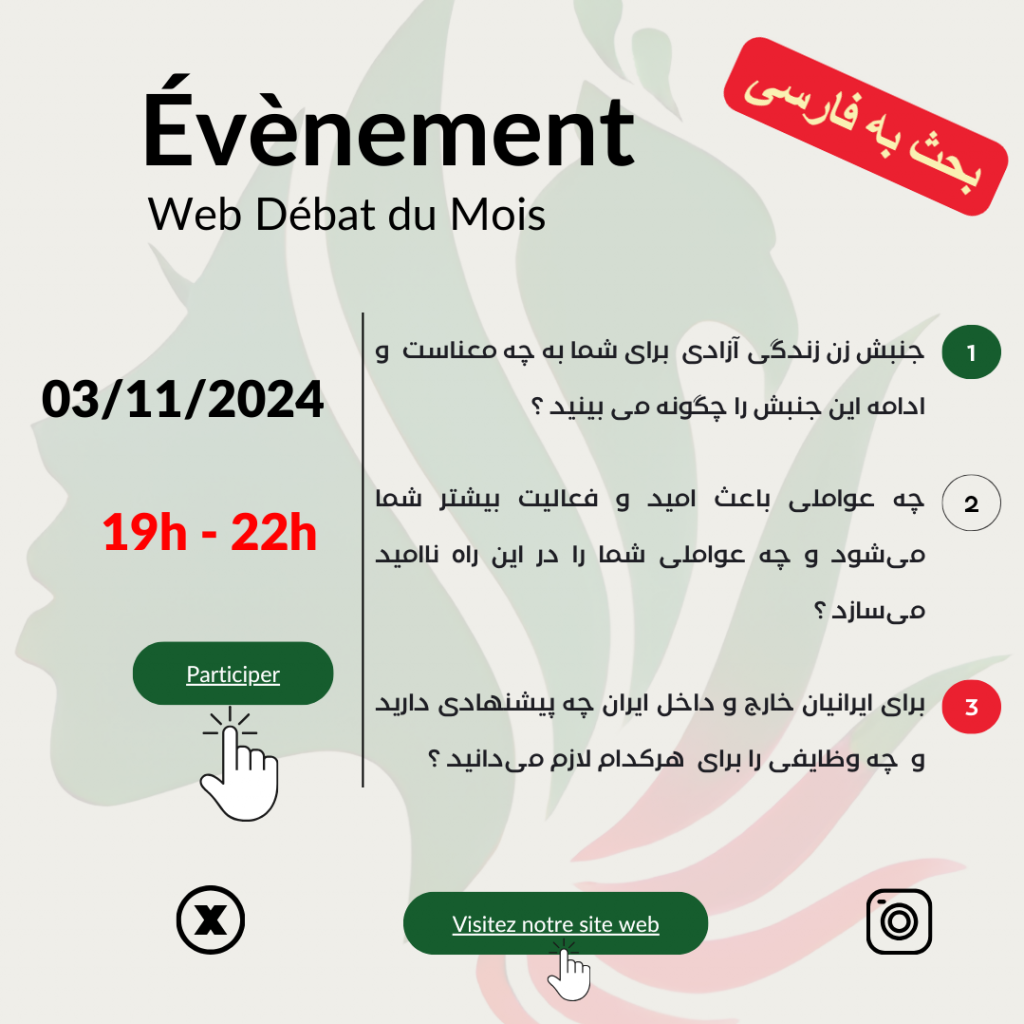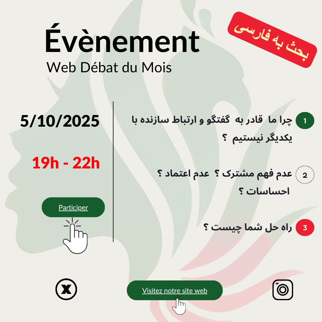 Nous vous invitons à un débat en ligne approfondi sur l’opposition iranienne. Ce débat nous permettra d’explorer les différentes facettes de la situation actuelle et mettra en lumière les solutions envisageables pour soutenir une efficacité plus grande.