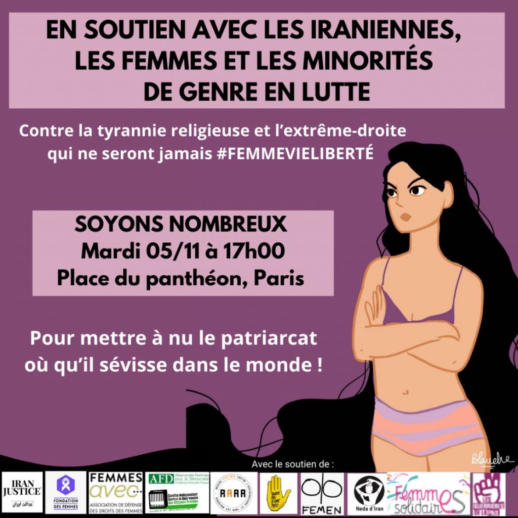 Rassemblement en solidarité avec Ahou DARYAEI, étudiante Iranienne, agressée par la police des mœurs, battue et arrêtée pour un « voile mal porté » en Iran