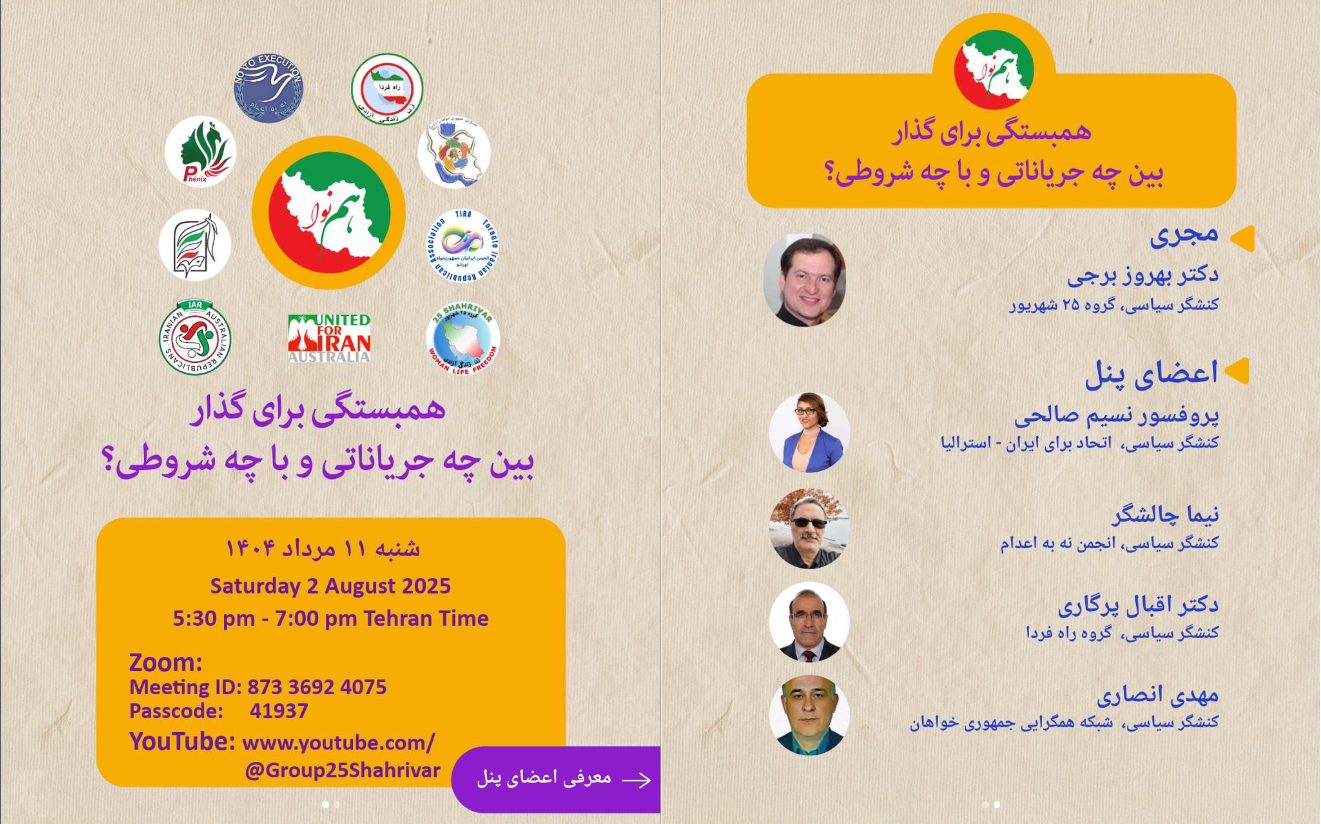 نشست مجازی با موضوع «همبستگی برای گذار بین چه جریاناتی و با چه شروطی؟» برگزار کنیم و در آن به بررسی شروط برقراری یک همبستگی احتمالی بپردازیم.